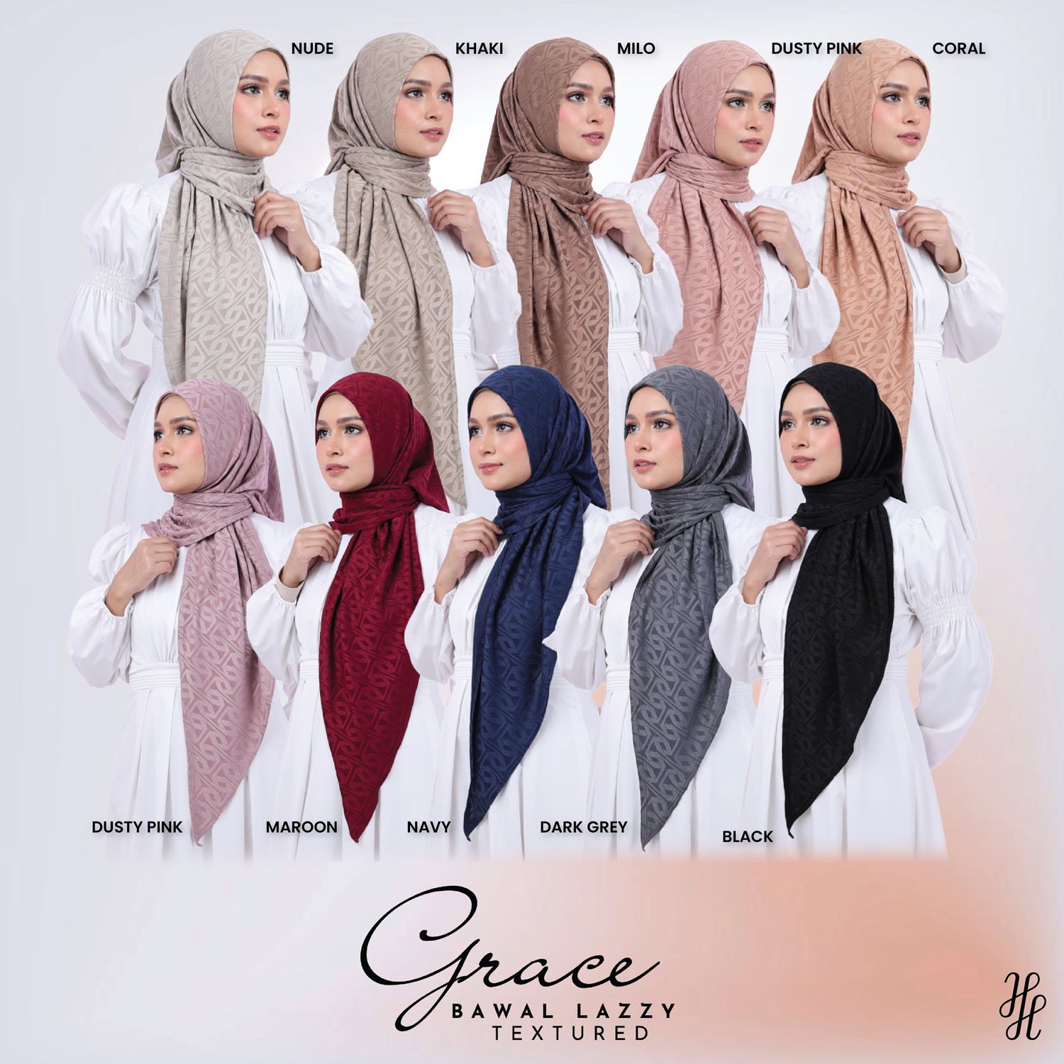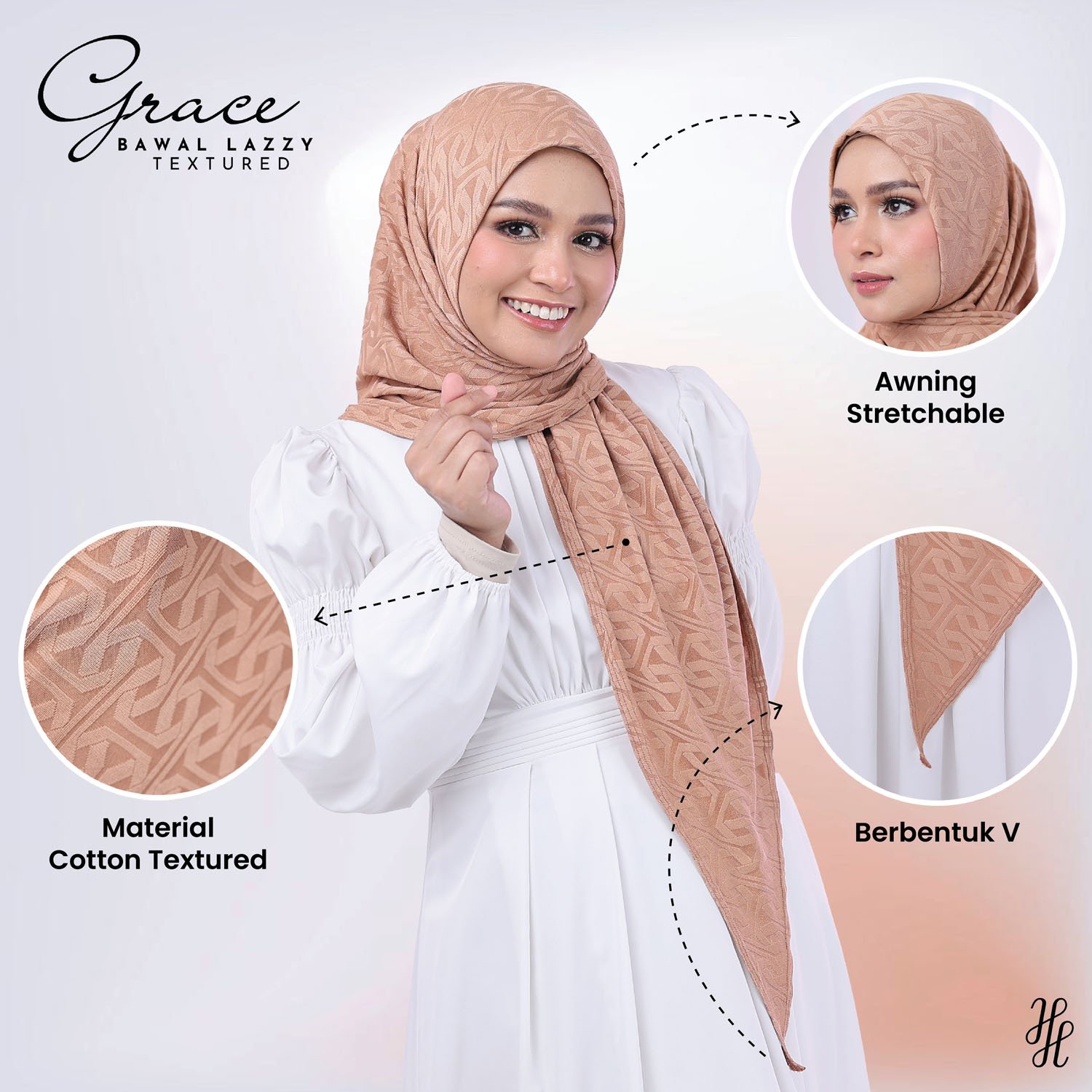 BAWAL LAZY GRACE TEXTURED | KAIN JACARD ORGANIK BESAR BOX PREMIUM | HIJAB KASUAL YANG SIAP DIPAKAI & ELASTIK