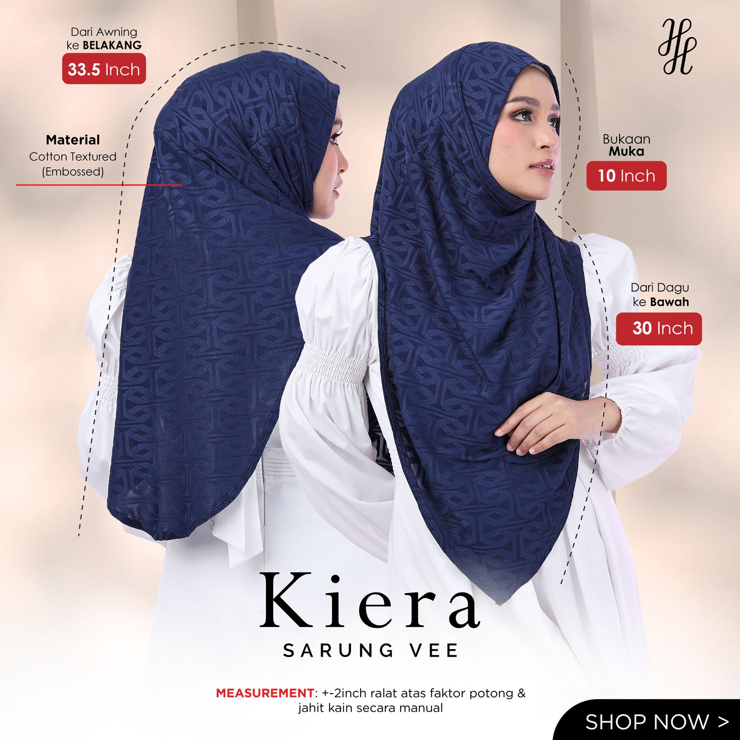 hijab Muslimah. Terbuat daripada bahan HQ Soft Jackward Premium, memberikan keselesaan maksimum.