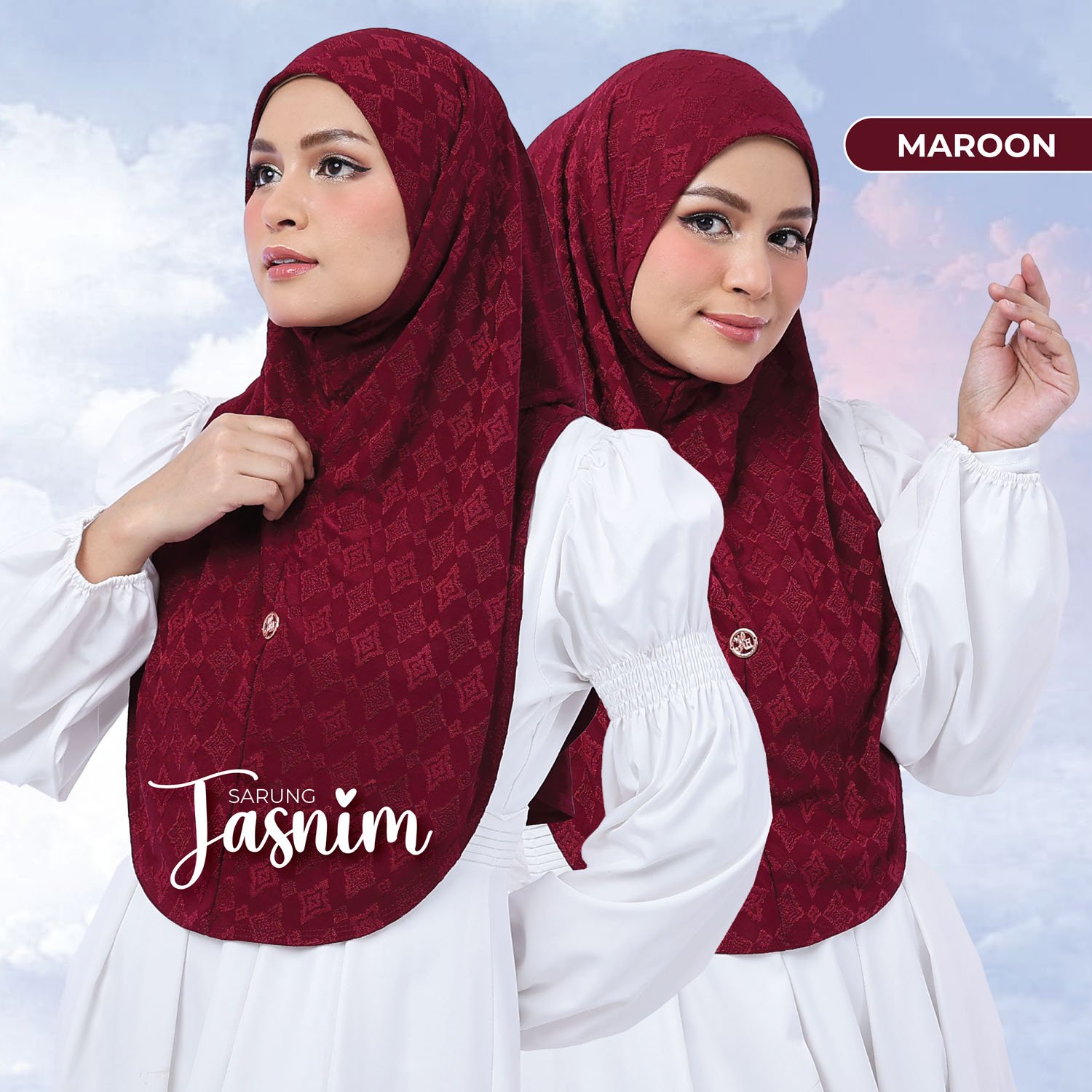INSTANT TUDUNG SARUNG TASNIM hadir dengan kain premium Jackward berkilat. Hijab ini ironless dan stretchable, memudahkan penggunaan sehari-hari. la adalah pilihan sempurna untuk muslima yang mencari gaya dan keselesaan.