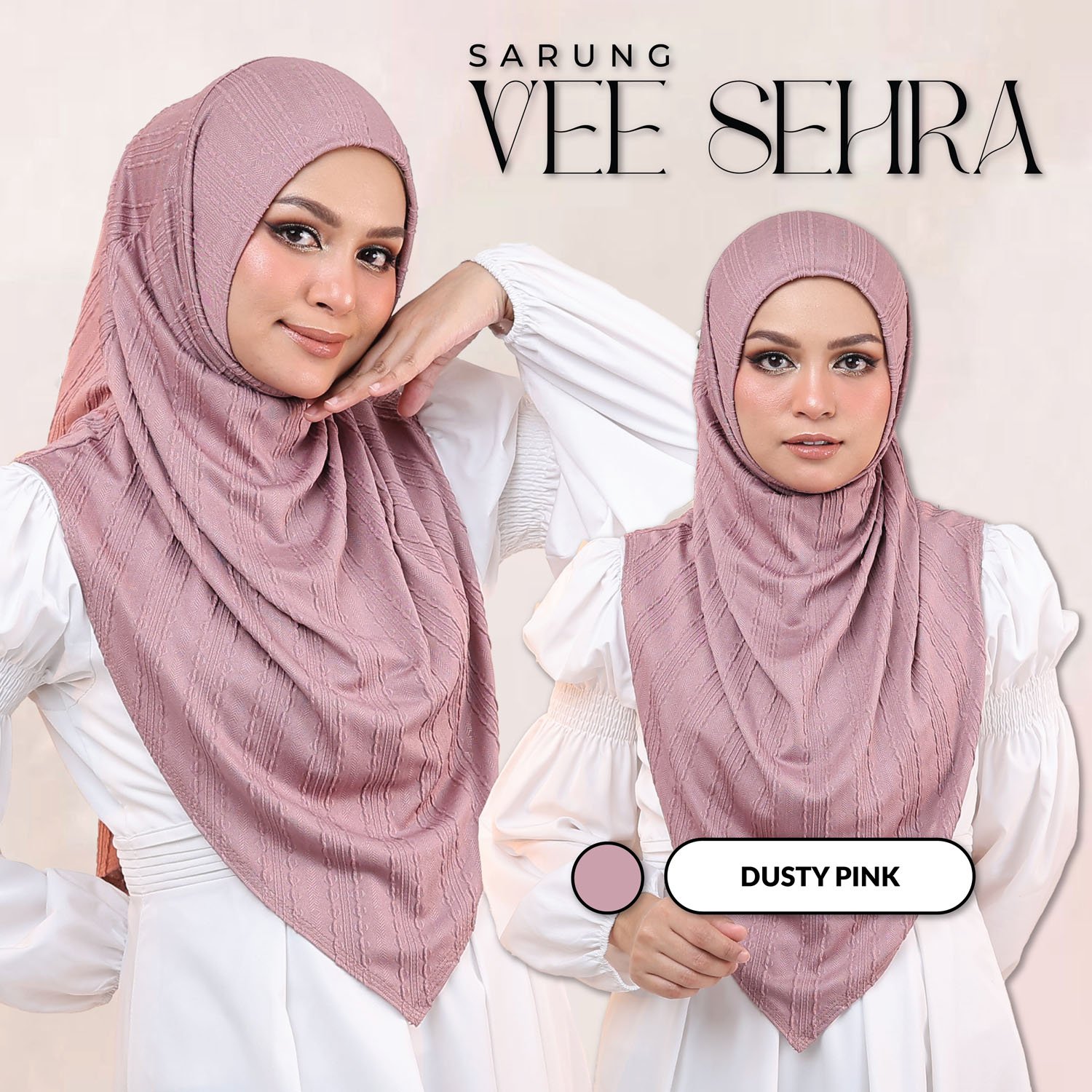 Sarung Sehra Vee hadir dengan kain bahan premium Jackward Cotton. la memberikan penampilan yang elegan dan sesuai untuk fashion Muslim. Sarung ini mudah dirawat kerana ia bebas dari seteri. Cocok untuk pengguna yang mencari hijab yang cantik dan praktikal.